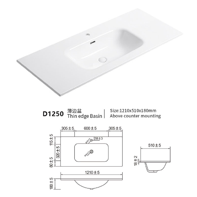 Integrated ceramic sink 50cm width depth 120cm
