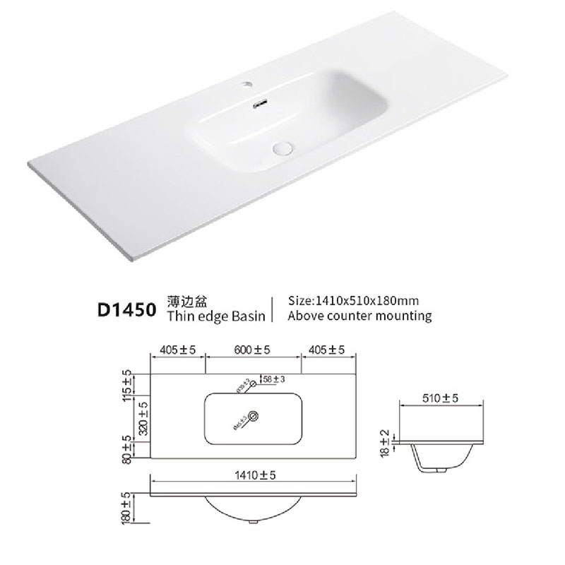 Integrated ceramic sink 50cm width depth 140cm