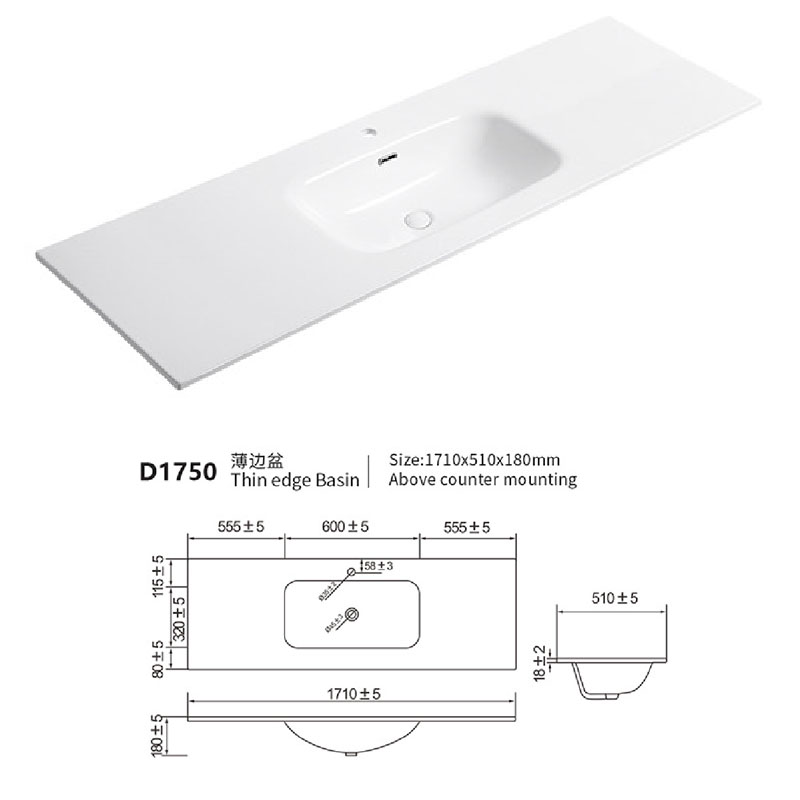 ceramic integrated sink from 50cm to 150cm